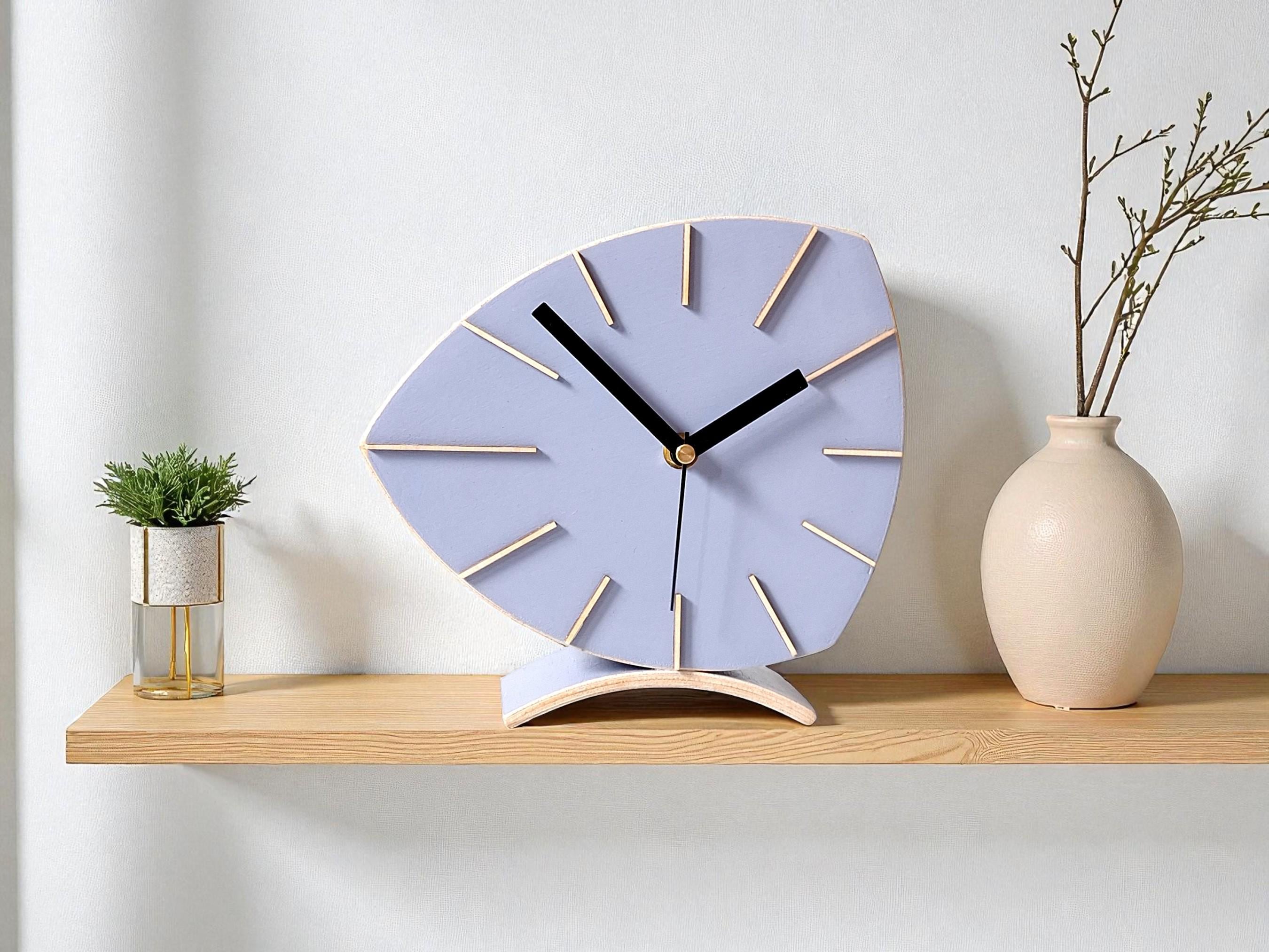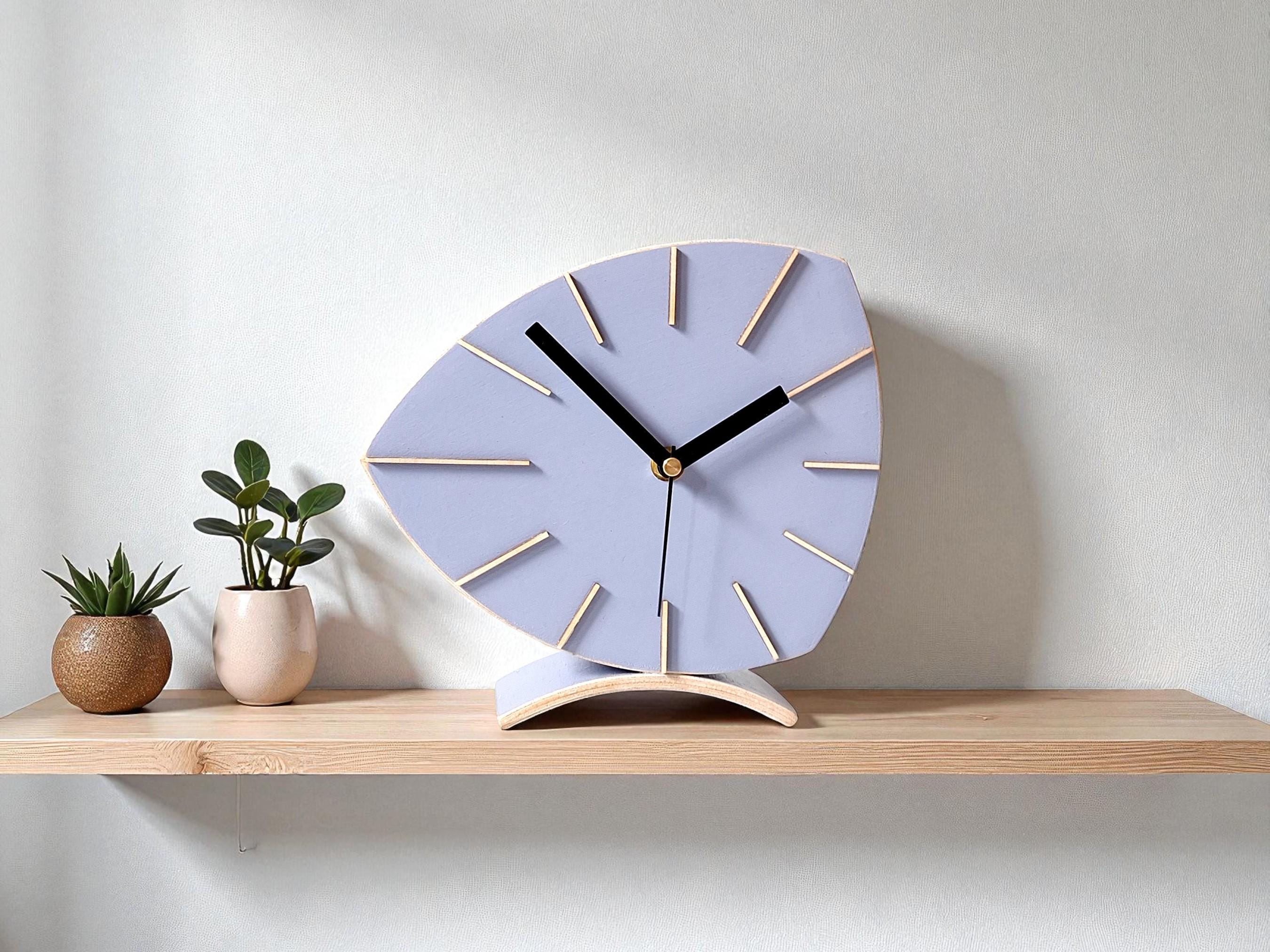 This lavender-hued desk clock is crafted from solid wood, exuding elegance and tranquility with its soft lavender finish. Its silent mechanism ensures a peaceful ambiance, making it ideal for bedrooms, offices, and homes alike. Whether you're seeking a unique wedding gift, a thoughtful housewarming present, or a special token of appreciation for Mom, this lavender desk clock is sure to impress.