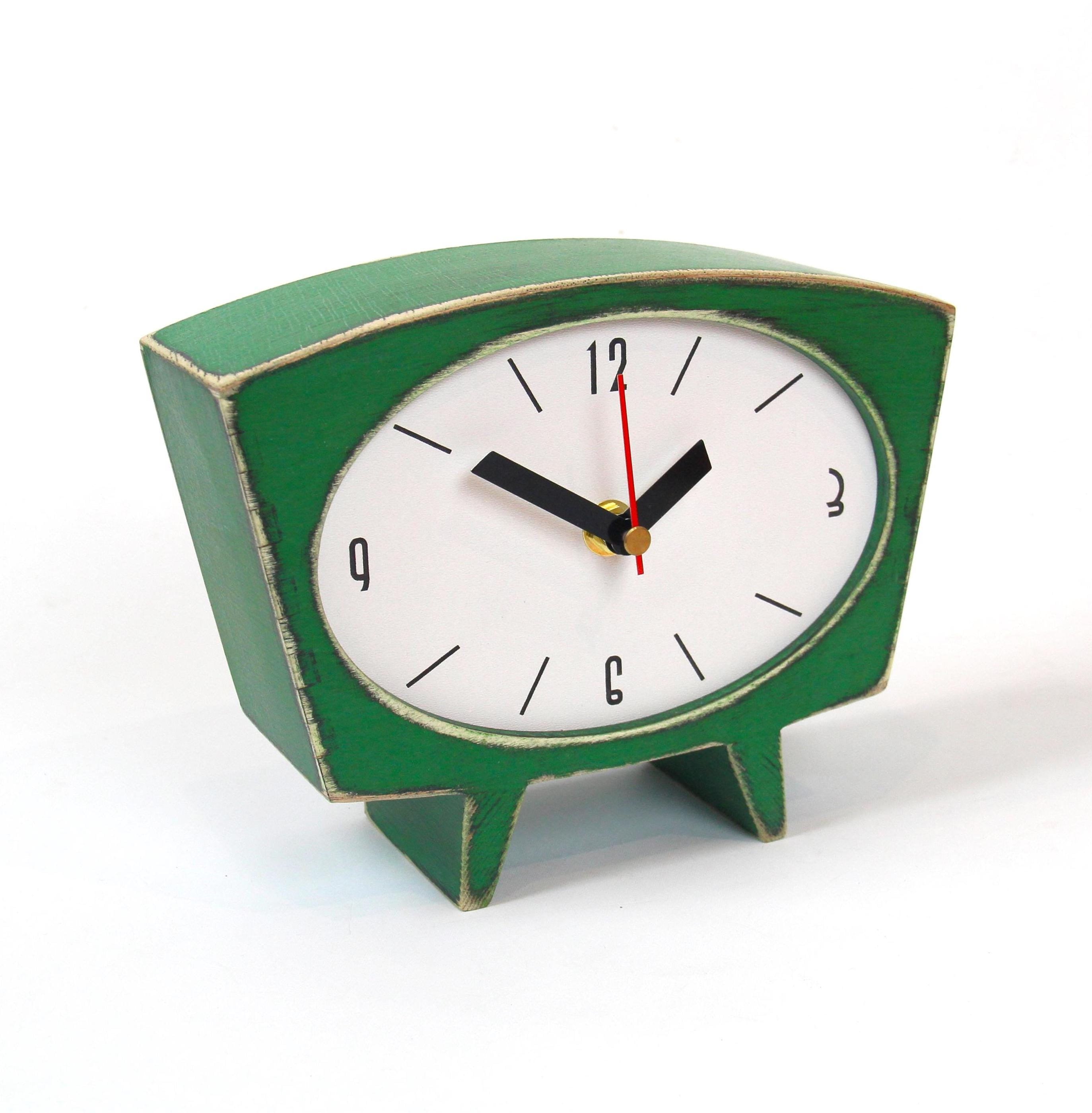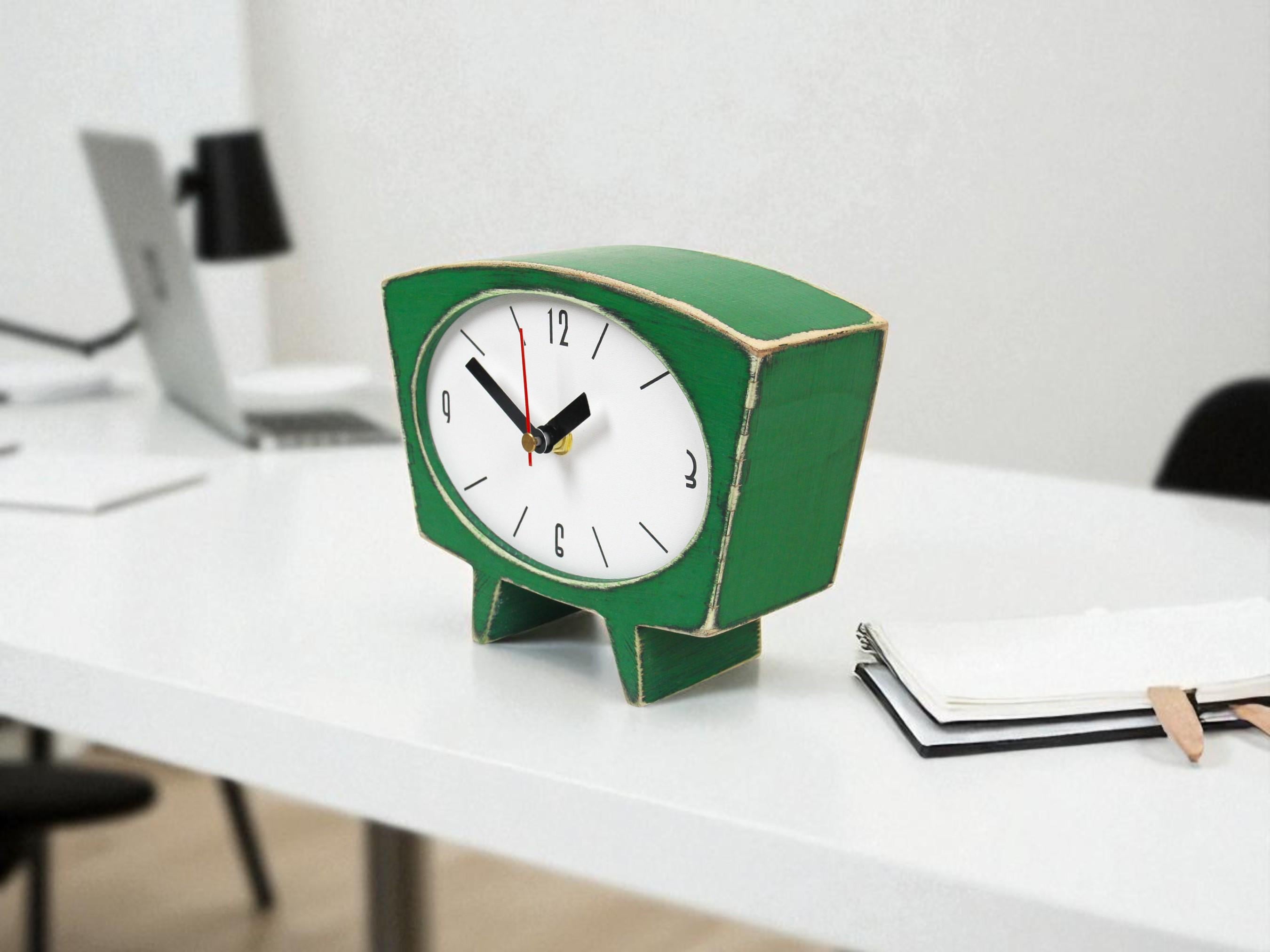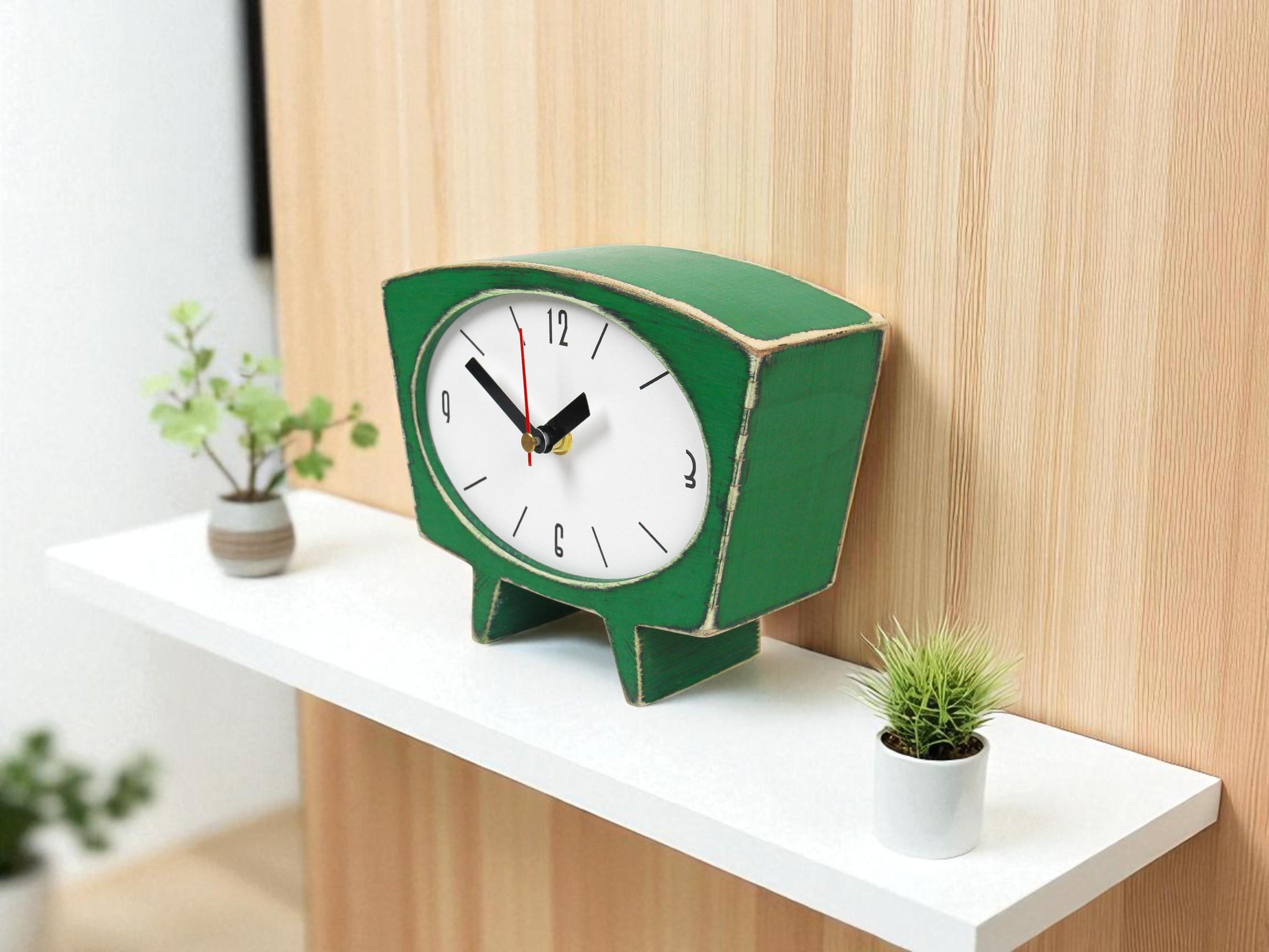 Add vintage charm and vibrant style to your décor with this handmade green wooden desk clock. Carefully crafted from solid wood and plywood, this clock combines durability with artistic detail. Its bright green finish is hand-painted, making every piece one of a kind.