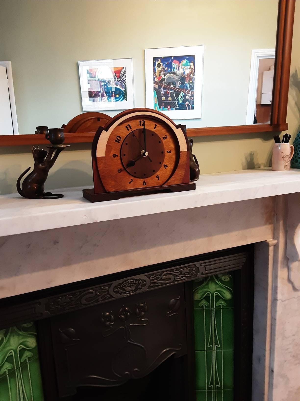 This handcrafted wooden desk clock combines Art Deco mantel style with Mid-Century Modern shelf decor. Its silent, no-ticking mechanism makes it perfect for desks, tables, or shelves, while the natural ochre and mahogany wood adds warmth and character to any space.