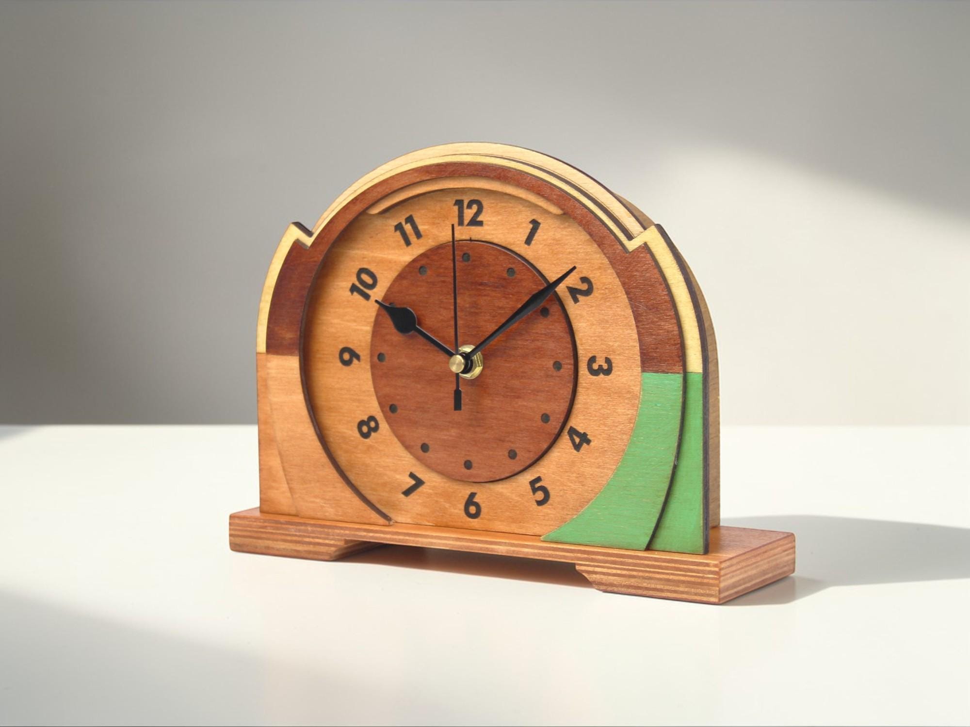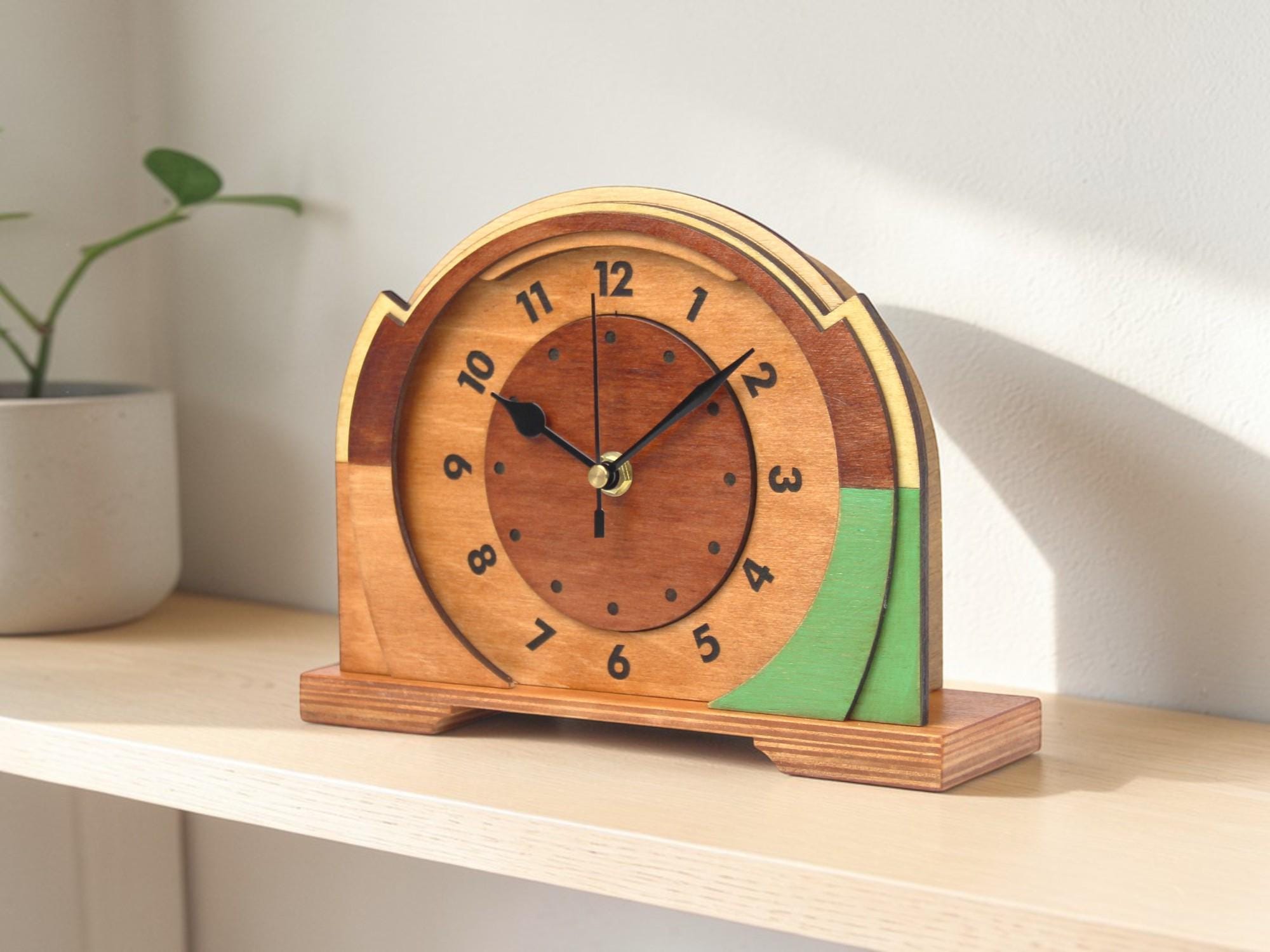 Handmade wooden desk clock designed for calm and natural interiors. A warm and simple detail that fits perfectly on a shelf, desk or bedside table.