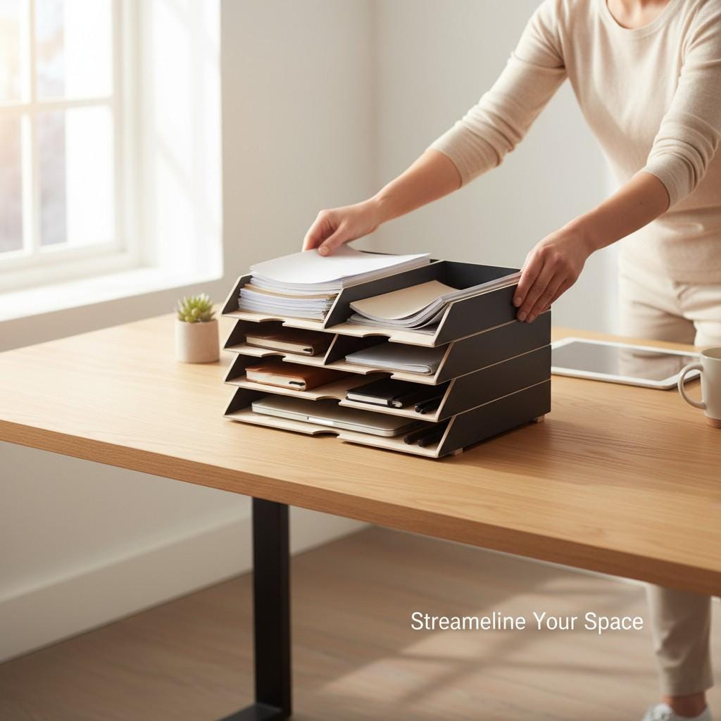 Organize your documents in style with a functional, elegant, and stackable larch wood desk organizer tray for A3 and A4 paper.