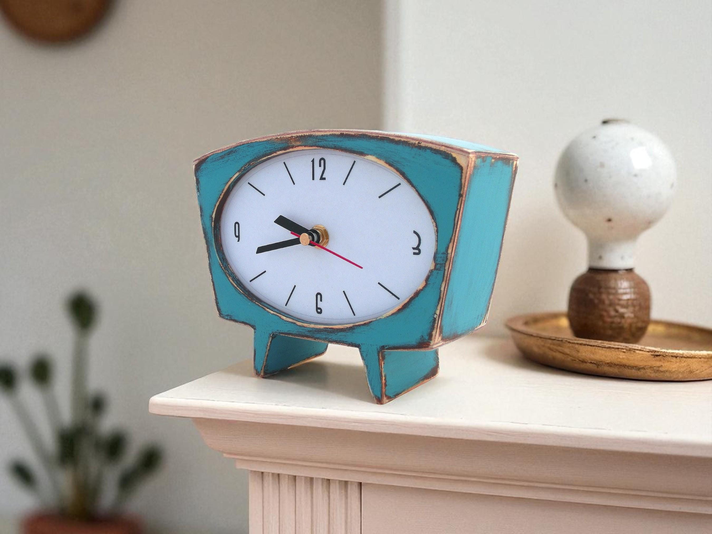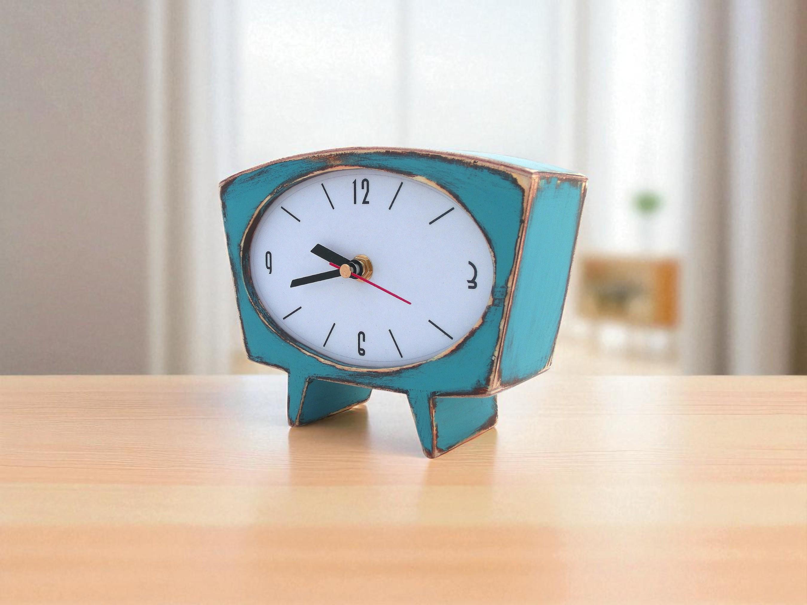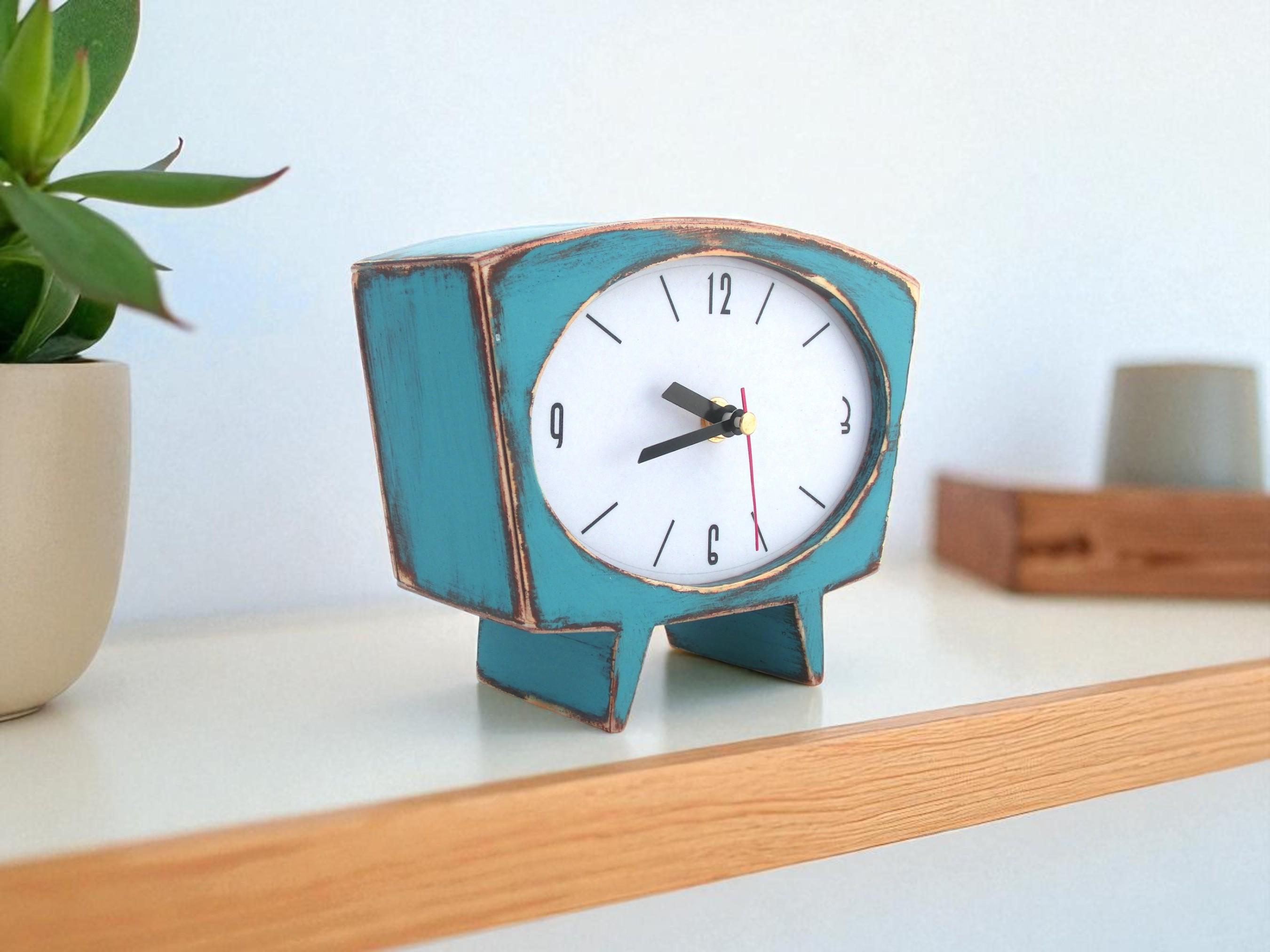 Perfect for desks, shelves, or as a thoughtful gift for weddings, birthdays, or Christmas, this clock combines style, sustainability, and functionality. Its compact size makes it ideal for everyday use, while its vibrant turquoise tones brighten up any interior.