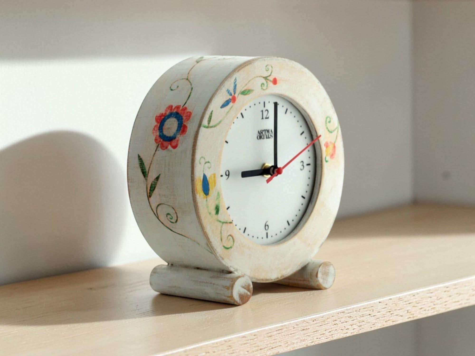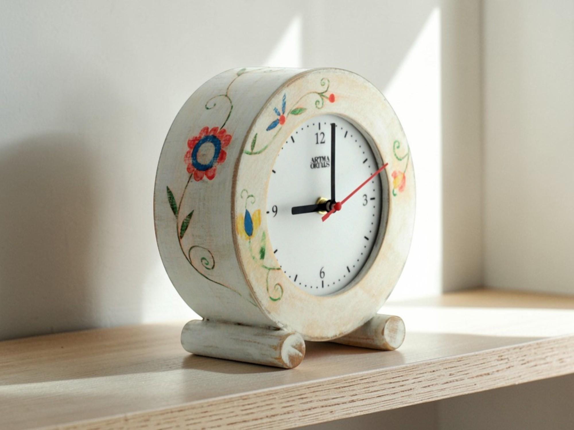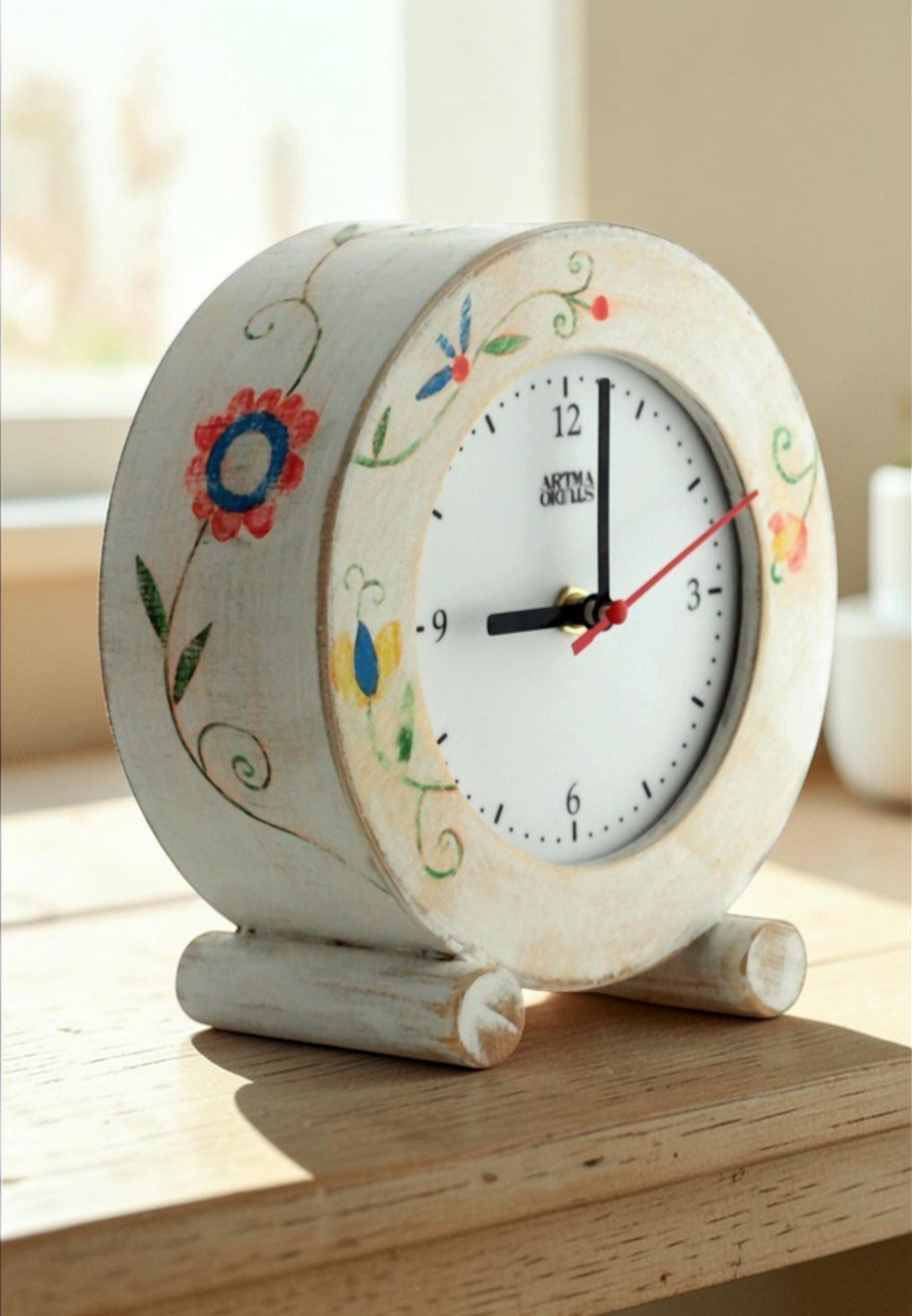 Bring timeless elegance and quiet charm to your home with this handmade floral desk clock. Inspired by folk style, it adds a colorful and unique touch to any room.