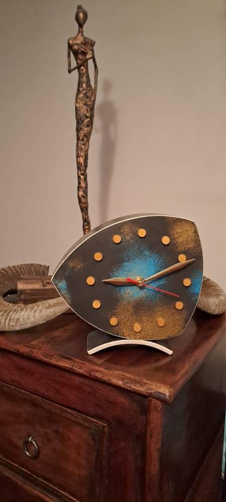 This handmade desk clock is crafted from exotic flexible Fuma plywood.